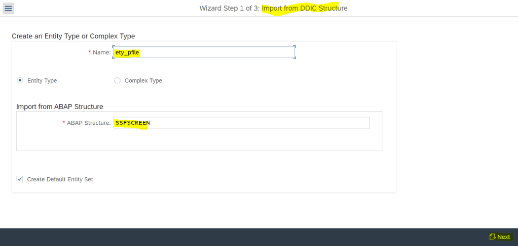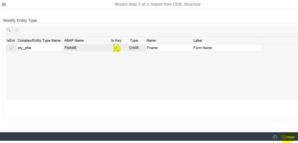 Create data model- by importing from DDIC structure. Provide the structure and entity type name.