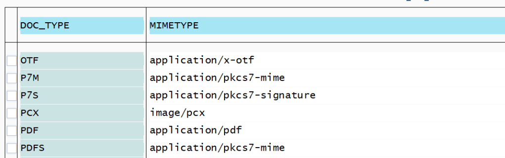 Below table is a control table can be used to get the MIME Type based on the DOC_TYPE.