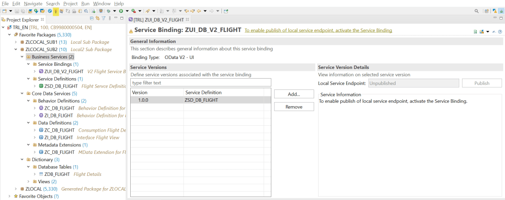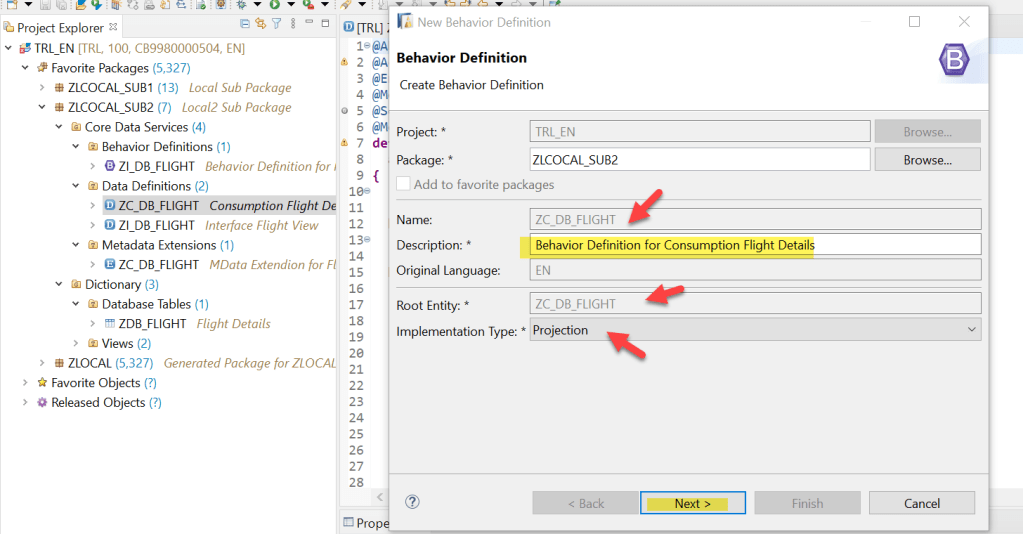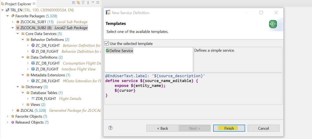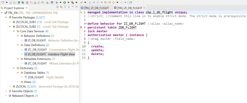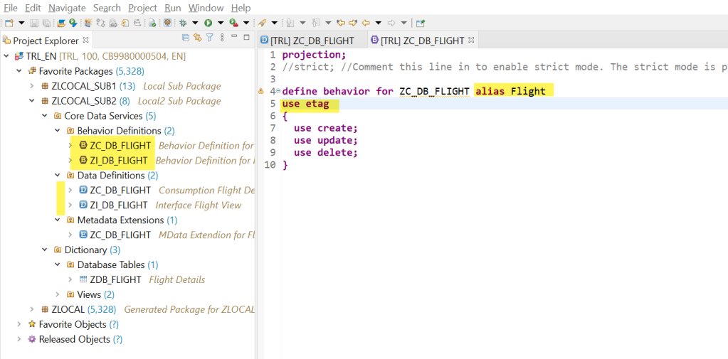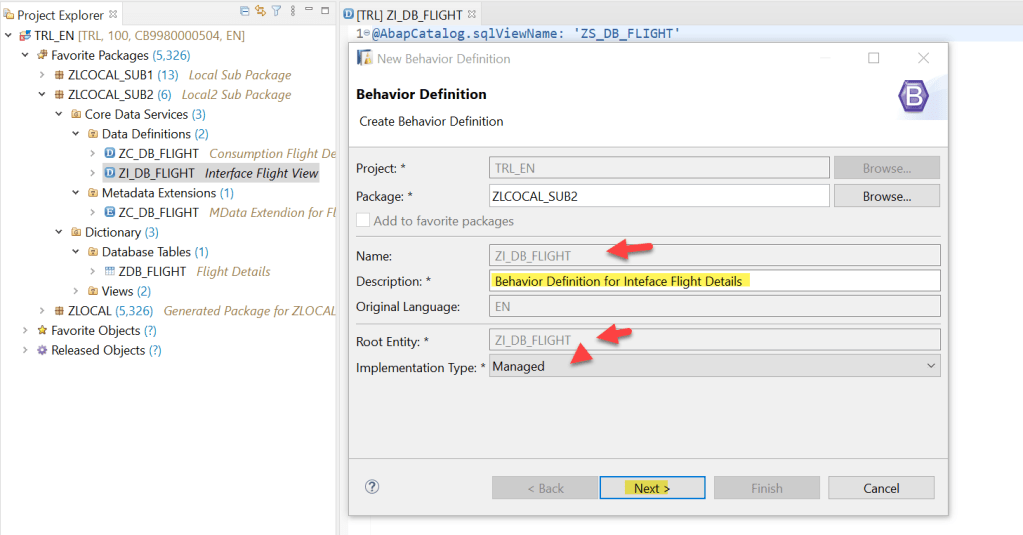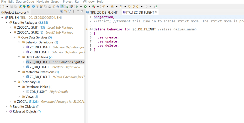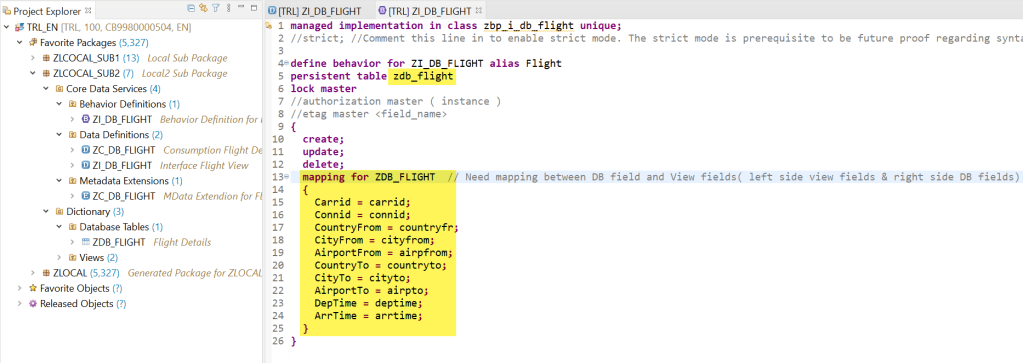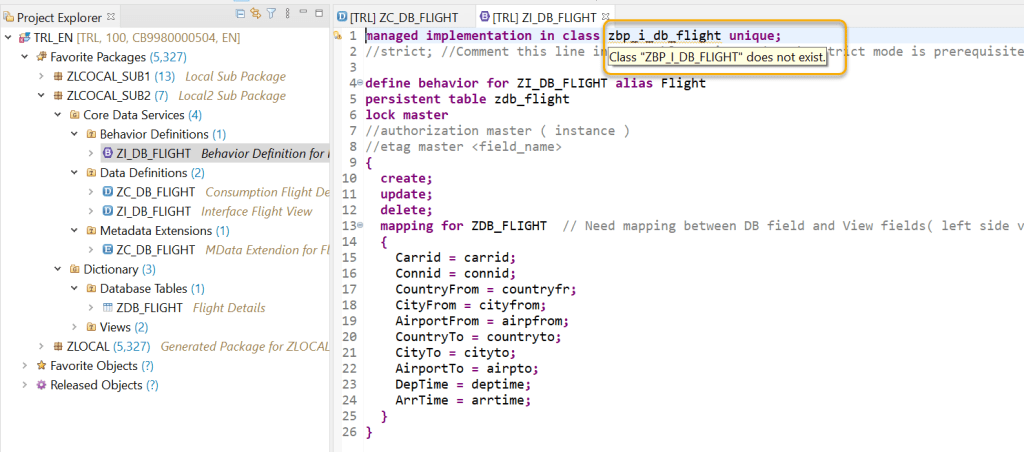 One more thing is- the system suggested a class name which is not yet created but if we are adding other actions, validations or determinations then we can create this class and implement those but as we are dealing with only CRUD operations then its not mandatory to create the class. We just leave it as it is at the moment.
