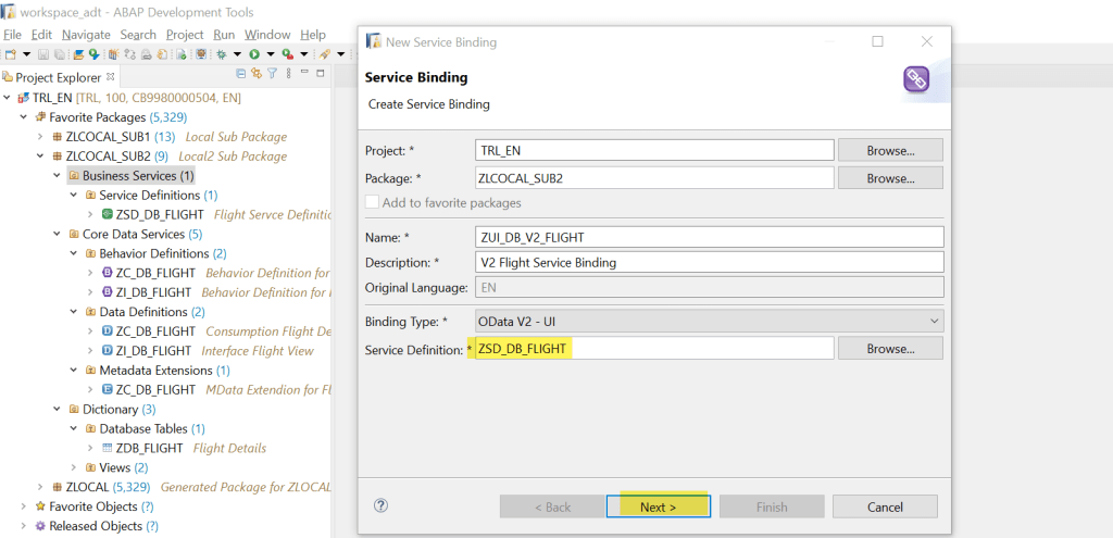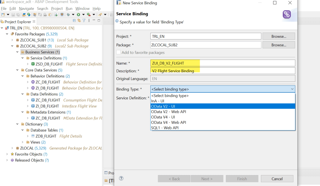 Provide a name, description and Binding type- we can choose OData V2/V4 UI. Let’s select as below-