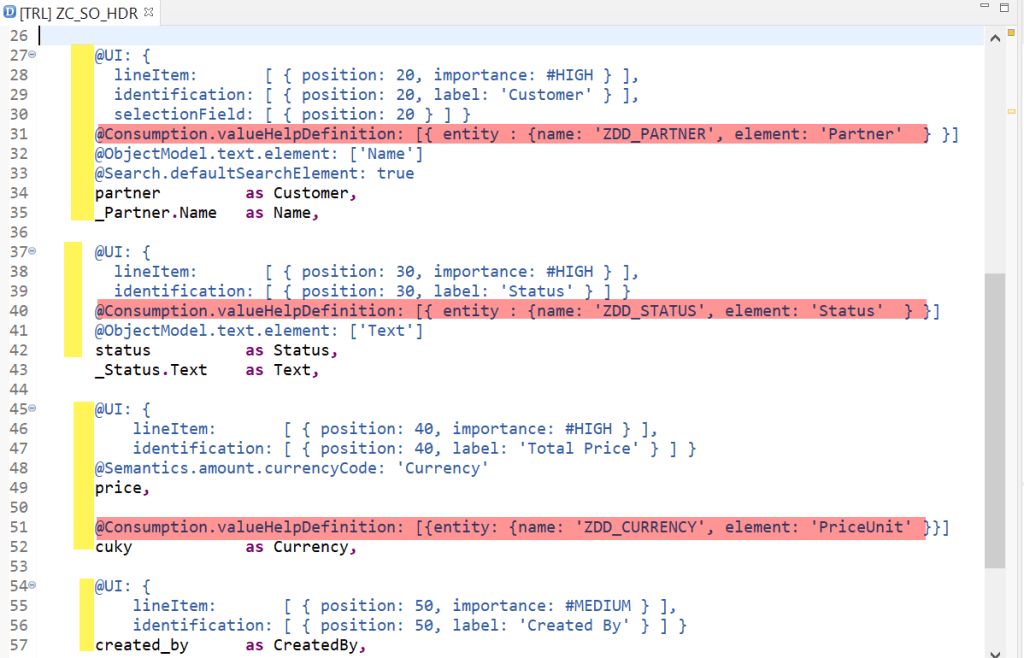@Consumption.valueHelpDefinition: [{ entity : {name: 'ZDD_STATUS', element: 'Status' } }]