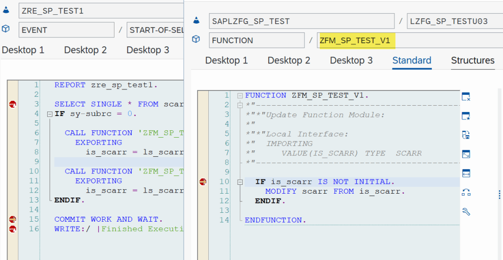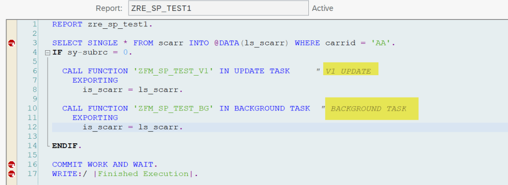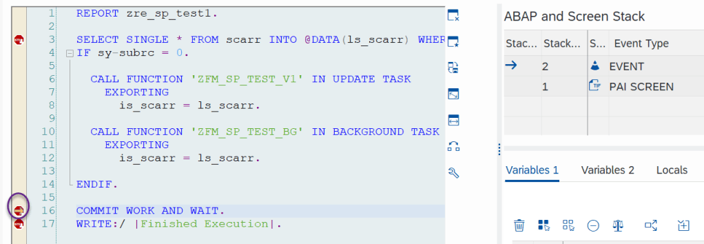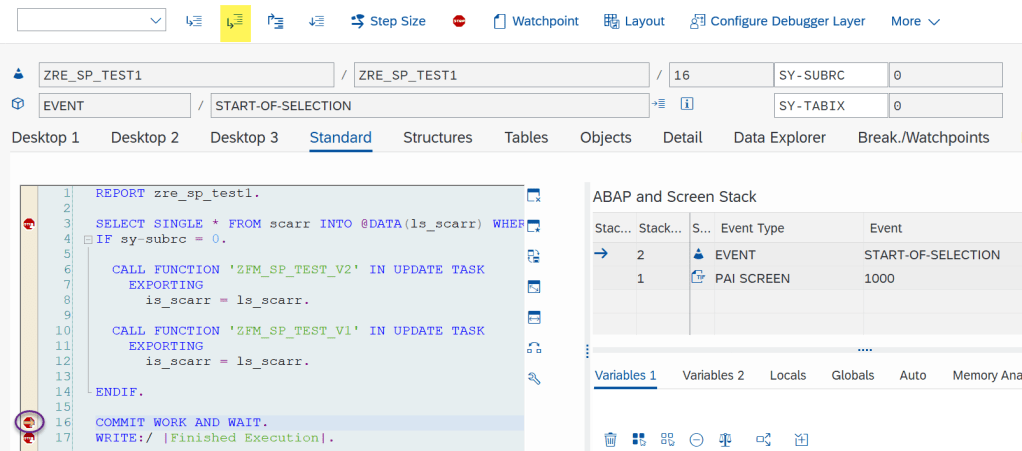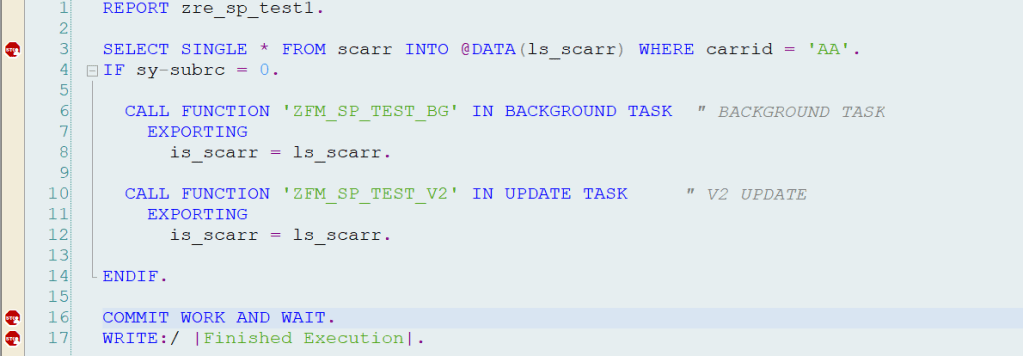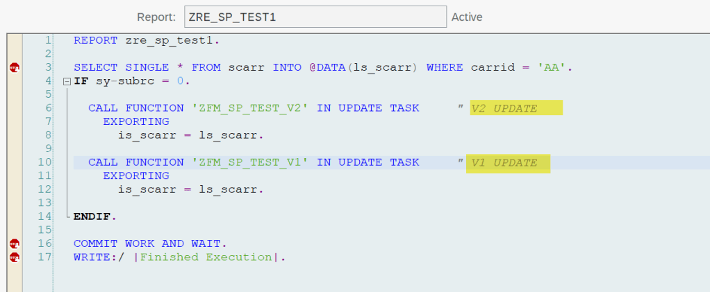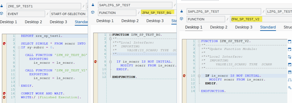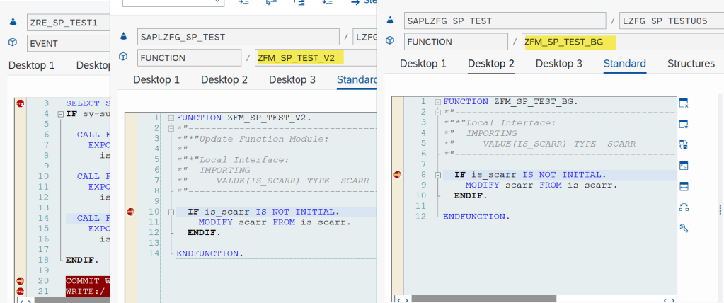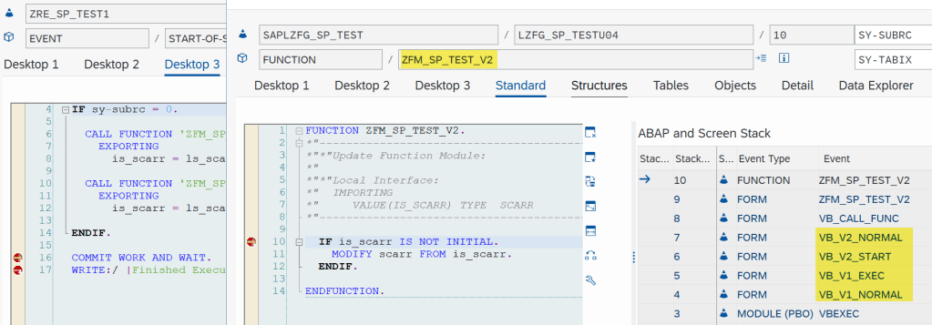 The post shows the sequence of execution of different FMs i.e V1 update FMs, V2 update FMs & background RFC FMs during the COMMIT WORK command execution.
