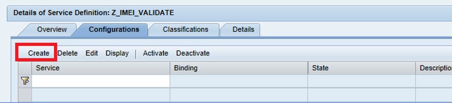 Go to the TCode: SOAMANAGER in Test client → Select Service Definition → Enter Definition name: Z_IMEI_VALIDATE → Press Enter