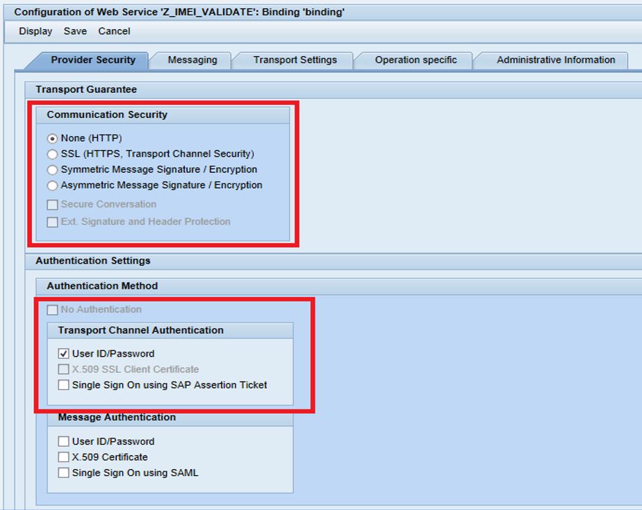 In Provider Security Tab: to provide HTTP request select ‘None’ and for HTTPS request select ‘SSL (HTTPS, Transport Channel Security)’ in Communication Security tab. Select the options as per your requirement.