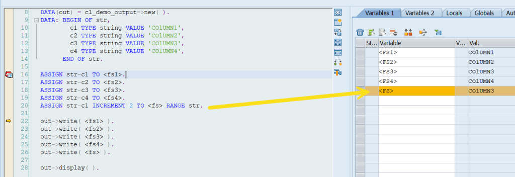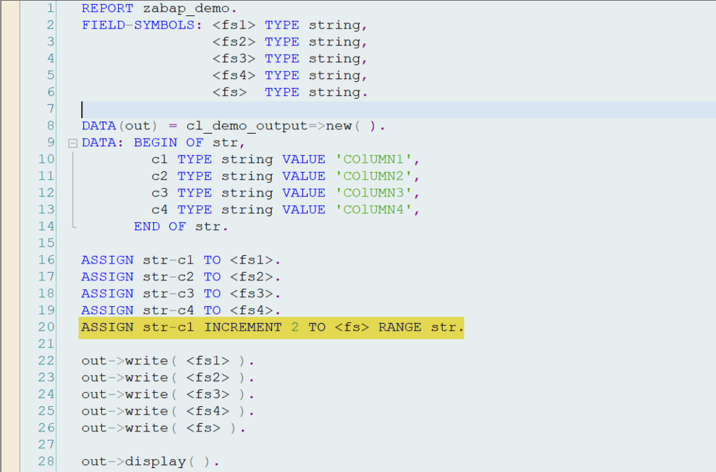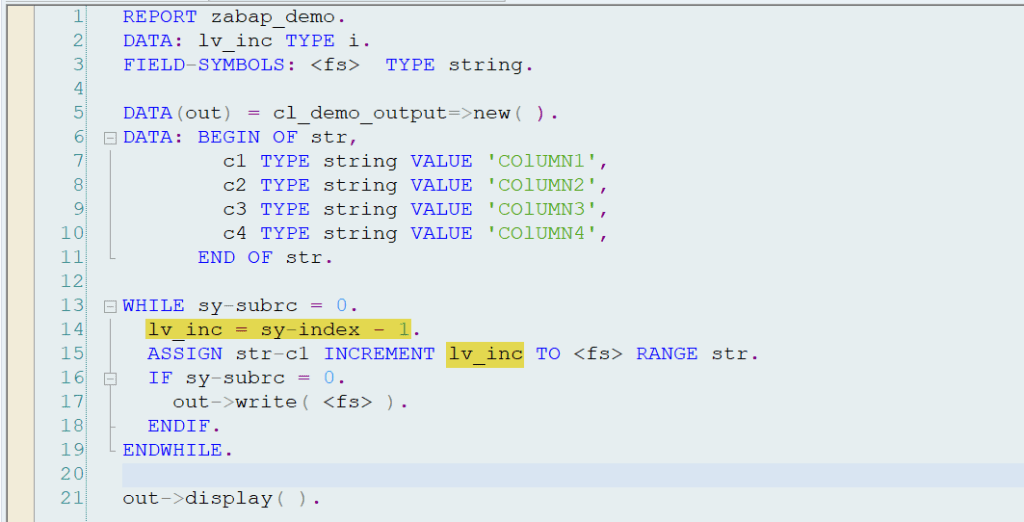 The below post describes about dynamic ASSIGN with INCREMENT variant which is designed for sequential access of memory area that are located at regular intervals after each other like consecutive similar structure components . The RANGE addition helps to define the area in which the INCREMENT is applied.